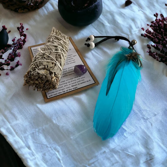 Smudging Kit, Cleansing Crystals Kit, Handmade, New Home Gift, Energy Cleansing, White Sage, Smudging Feather, Amethyst, Witch, Pagan, Wicca