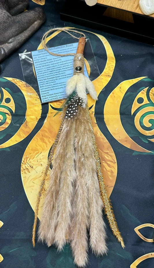 Witch's Broom, Grey Witch Broom, Floral Broom, Protection Broom, Alter Charm, Wall Hanging, Witch Broom, Wicca Broom, Pagan Broom