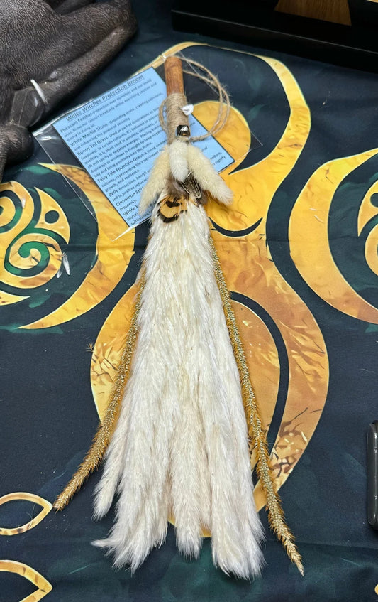 Witch's Broom, White Witch Broom, Floral Broom, Protection Broom, Alter Charm, Wall Hanging, Witch Broom, Wicca Broom, Pagan Broom